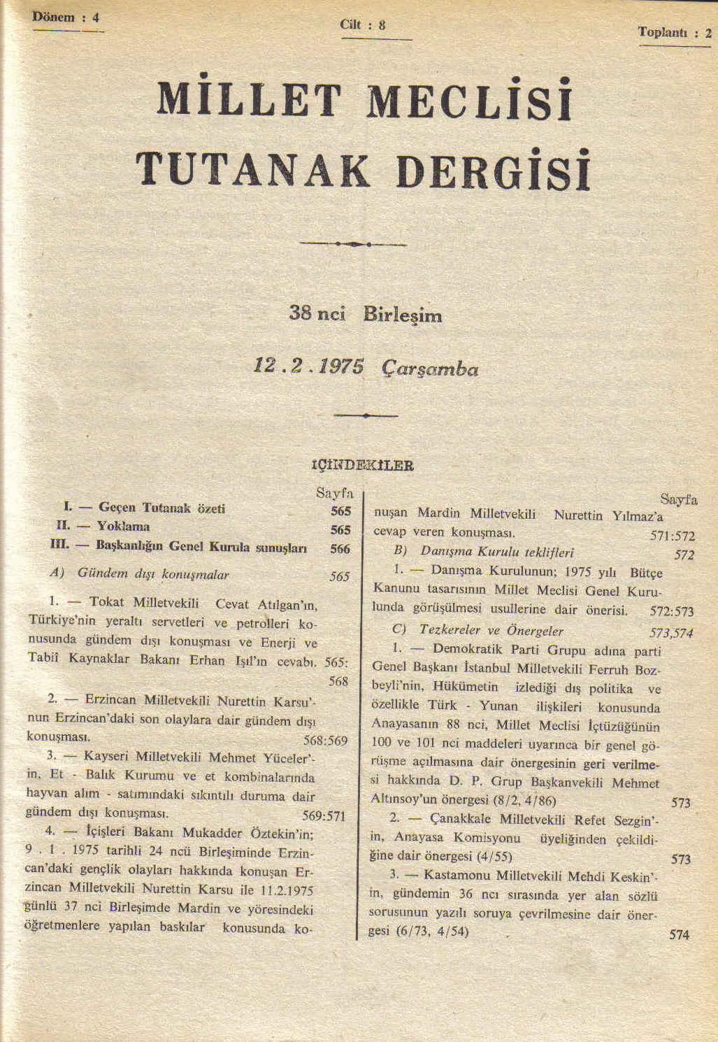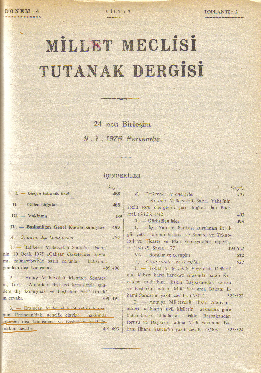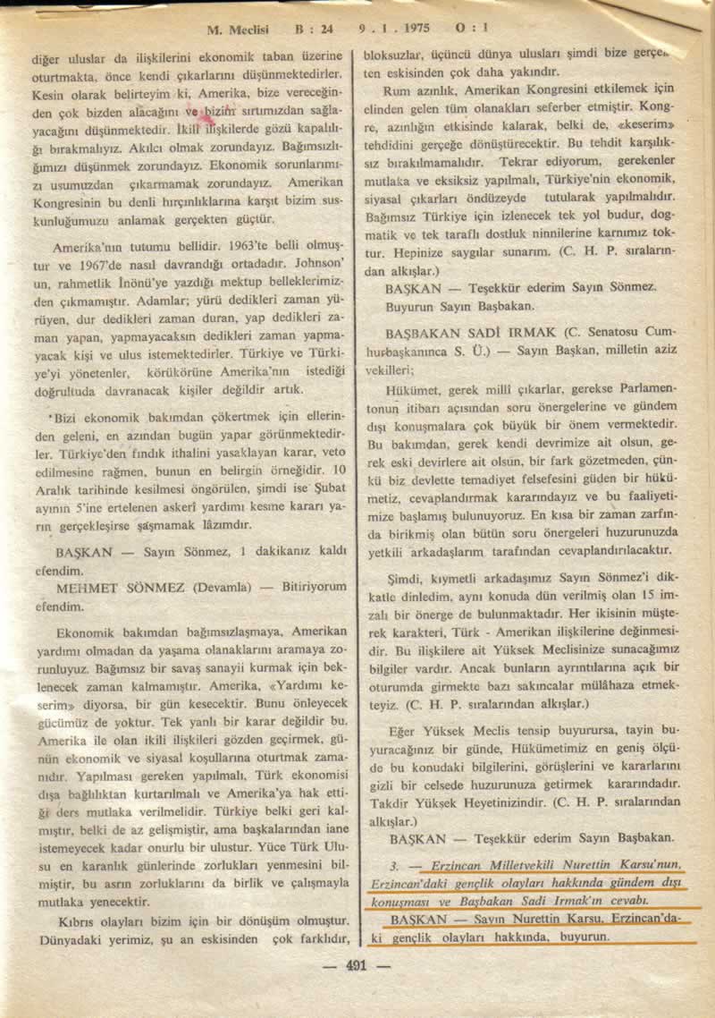 TBMM Erzincan Olayları Konuşması
